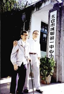 1996年黄胜年(左)与表兄时俊在母校前合影
