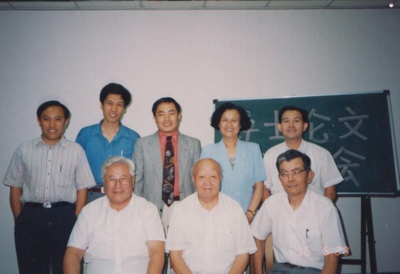 李来风(第2排左三)于1996年博士答辩时与导师洪朝生(第1排右一)合影