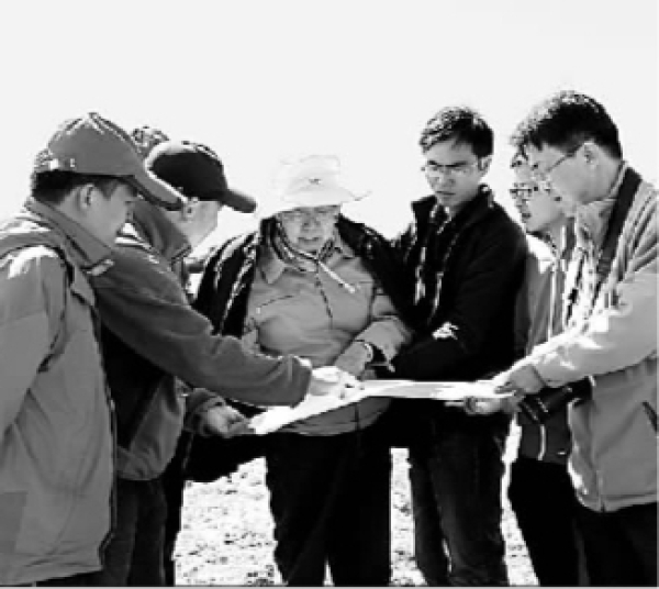 2014年9月,李吉均(中)一行考察马衔山地球科学实践教学基地。资料图片