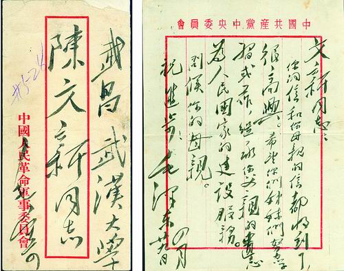 “那时候,陈文新在农学院还是很有名的。”1951年5月初,陈文新收到了毛主席的亲笔信。“当时,很多同学都看了这封信。”李阜棣记得很清楚,“毛主席在信中说,希望你们姊妹们努力学习或工作,继承你父亲的遗志为人民国家的建设服务。”
