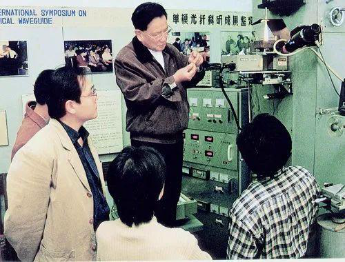 1996年,黄宏嘉院士在特种光纤实验室指导青年