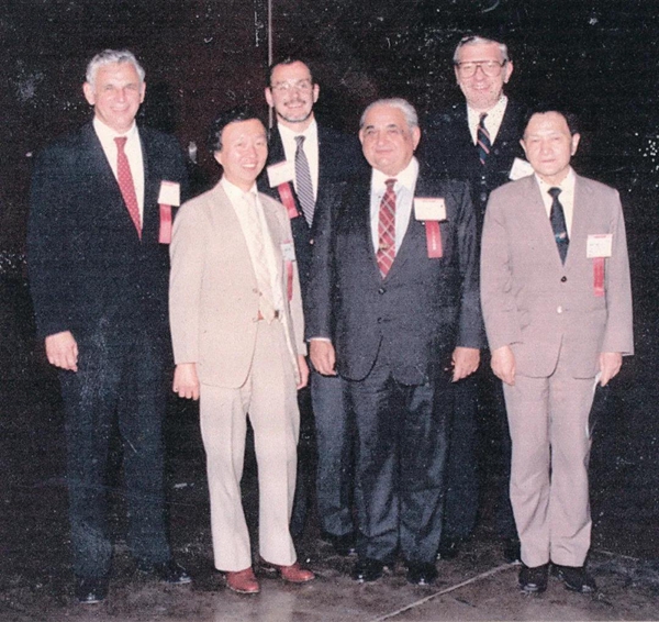 1986年,黄宏嘉(前排右一)与高锟(前排左一)等在美国奥兰多参加国际光纤通信会议