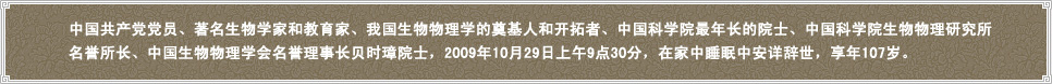 中国生物物理学奠基人贝时璋逝世