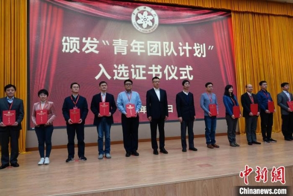 论坛开幕式上,举行颁发“青年团队计划”入选证书仪式。 中新社记者孙自法 摄