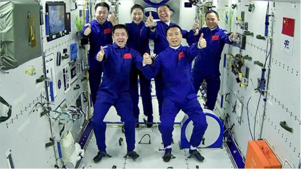 北京时间2022年11月30日7时33分,翘盼已久的神舟十四号航天员乘组顺利打开“家门”,热情欢迎远道而来的神舟十五号航天员乘组入驻“天宫”。随后,“胜利会师”的两个航天员乘组,一起在中国人自己的“太空家园”里留下了一张足以载入史册的太空合影。中国载人航天工程办公室供图