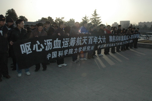 力学所拉起横幅表达对崔尔杰院士逝世的哀思
