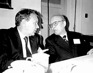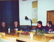 1990年,王鸿祯与国际地质科学史委员会主席M.Guntau在国际学术讨论会上。