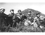 1954年,王鸿祯(左三)带着学生在中条山铜矿区圆头山顶参加野外观察。