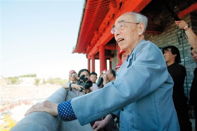 2004年9月1日,侯仁之第一次登上了复建总体竣工的永定门城楼