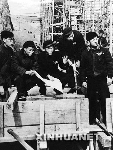 1958年,张光斗教授(左三)在北京密云水库工地调研