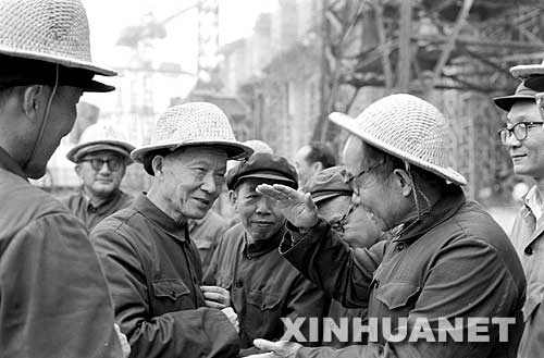 张光斗教授(左二)对葛洲坝工程的水工结构设计和施工提出指导性意见
