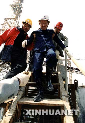 2000年4月,年近九旬的张光斗教授在三峡工地检查工程质量