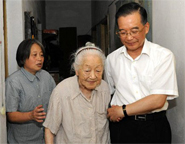 温家宝来到何泽慧家看望何泽慧老人