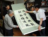 哈尔滨理工大学校长李大勇代表全校师生向王大珩先生赠送题字