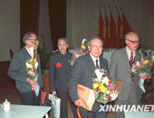 1991年4月25日,科学家王淦昌、王大珩、杨嘉墀、陈芳允(右起)荣获“86...