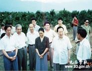 1995年,吴阶平视察旺苍鸡鸣山生态果园。