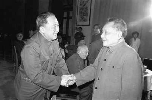 1981年1月1日,中共中央在北京人民大会堂举行新年茶话会。邓小平同志与吴阶平同志亲切握手。