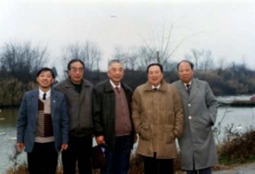 1991年12月,吴阶平(右二)到常州二院视察时在淹城留影。