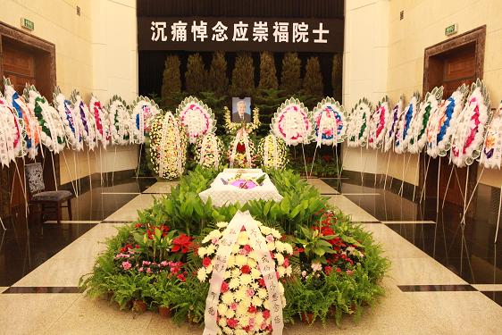 7月4日8点30分,应崇福院士遗体告别仪式在北京八宝山东礼堂举行。告别厅灵堂前高悬着“上德若谷声超穹宇”的挽联以及“宏论垂世”的挽幛。肃穆的灵堂中央,应先生的遗体安放在鲜花翠柏丛中。遗像两侧,党和国家领导人温家宝、李长春、习近平、李克强、刘延东、李源潮、张德江、吴官正、中科院院长白春礼、中科院高技术局局长田静、诺贝尔奖得主、著名物理学家杨振宁等个人以及中央组织部、无码影片