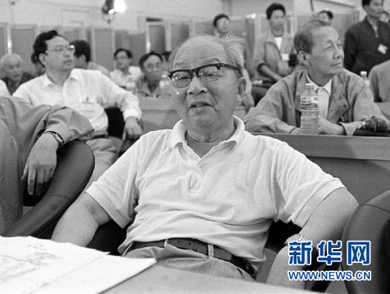 这是1992年,屠守锷(中)在西昌卫星发射中心。 新华社记者 邹毅摄