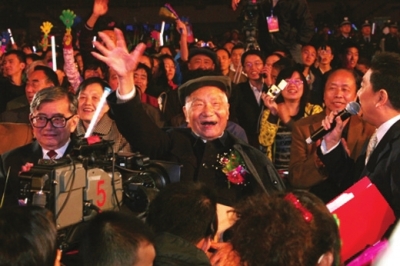 在庆祝兰州大学建校100周年文艺晚会上接受采访(2009年9月20日)