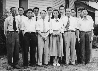 美国田纳西大学全体中国同学合影(左四)(1948年4月美国诺克维斯维尔)