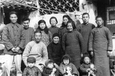 从美国回家后全家合影,中坐者父亲郑子明、母亲董宝瑜(1951年3月常熟东张镇)