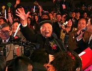 在庆祝兰州大学建校100周年文艺晚会上接受采访