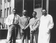 1960年,周维善(左三)在捷克科学院有机和生化研究所前