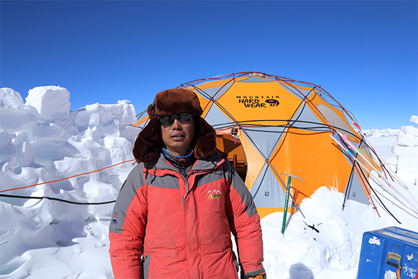 2015-9-30,古里雅6700m冰芯钻取,邬光剑在打钻帐篷前(受访者供图)