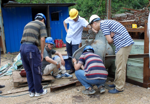 2014年,南仁东在大窝凼施工现场,牵索耳板检测