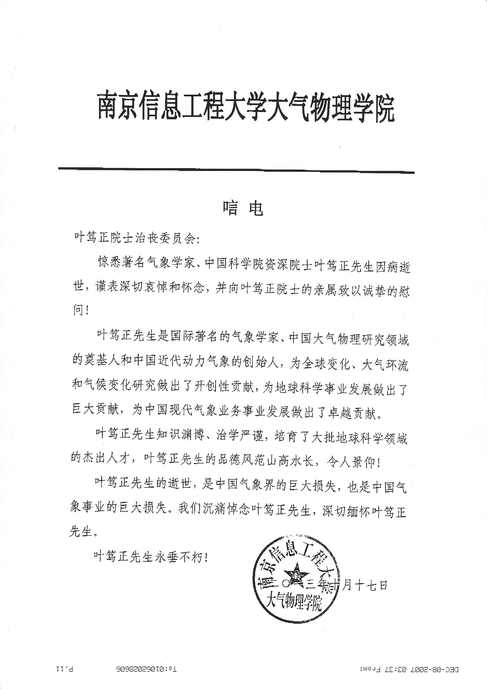 唁电