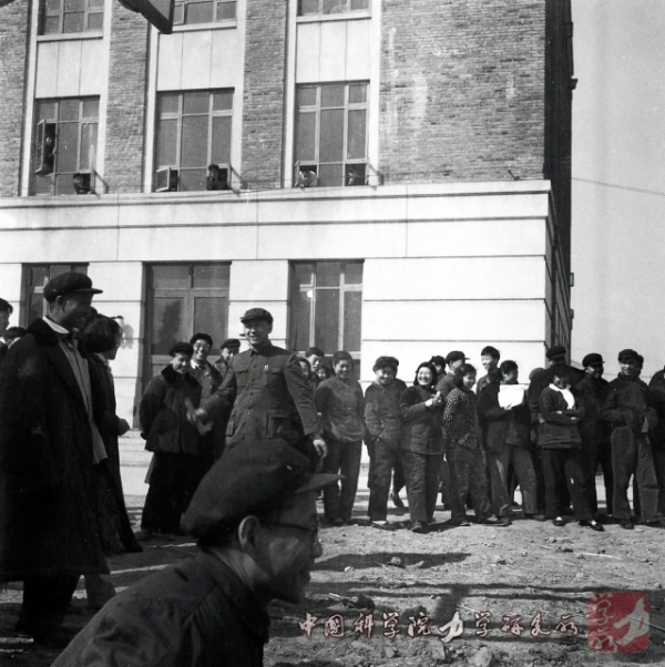 1960年,钱学森等观看郑哲敏科研团队在力学所院内的小型爆炸试验