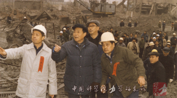1984年,郑哲敏院士(左二)在石景山电厂爆破拆除现场