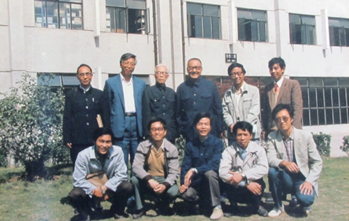 1988年10月8日,俞昌旋教授(前排中)参加中国等离子体物理学科两位最早获得博士学位的刘万东(后排右一)、蒋勇(前排右一)的博士论文答辩