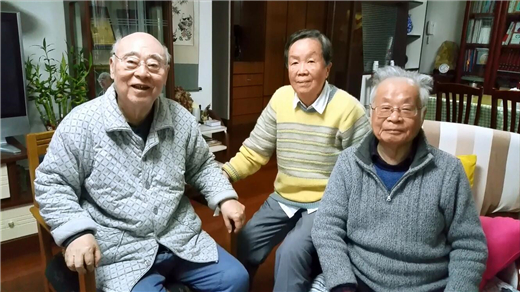 院士、核理论物理学家张宗烨(中),何祚庥。 视频截图