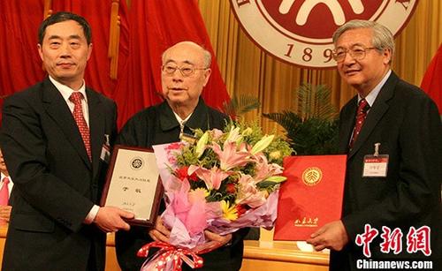 资料图:于敏(中),被授予北大“杰出校友奖”。中新社记者 孙自法 摄
