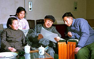 1976年10月6日,钱学森(右二)和工人在一起。