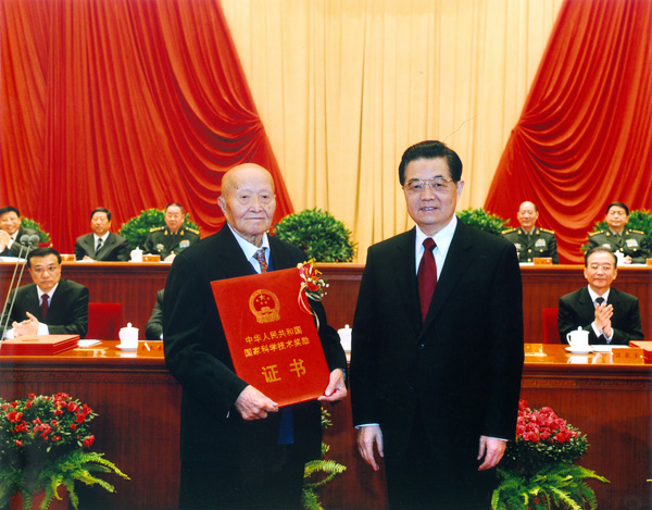 师昌绪院士获得2010年度国家最高科学技术成就奖,胡锦涛总书记向师昌绪院士颁奖