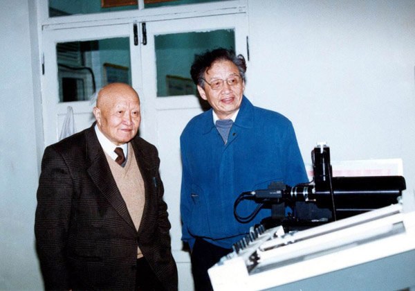 1993年师昌绪院士回腐蚀所视察,柯伟所长陪同他参观实验室
