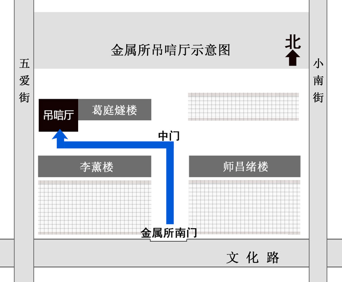 中科院金属所于2014年11月11日上午9点起在北区学术报告厅设立吊唁厅,供社会各界人士、研究所职工和研究生前来吊唁。