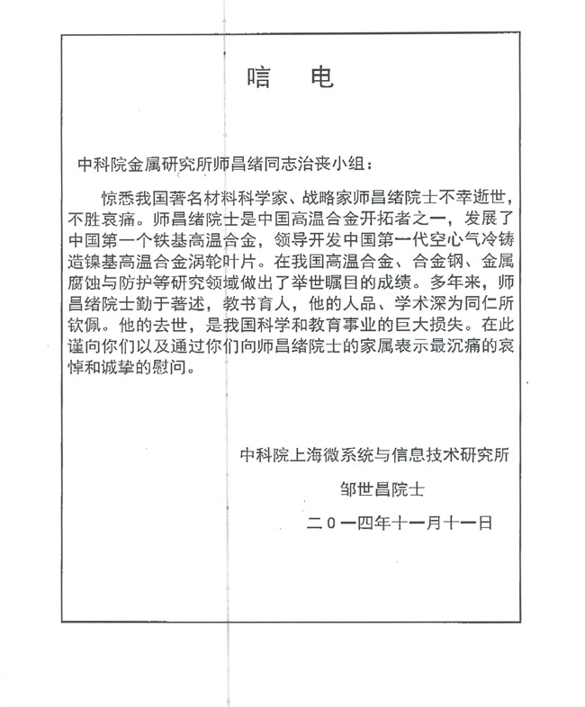 无码影片 上海系统与信息技术研究所 邹世昌院士致唁电