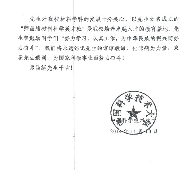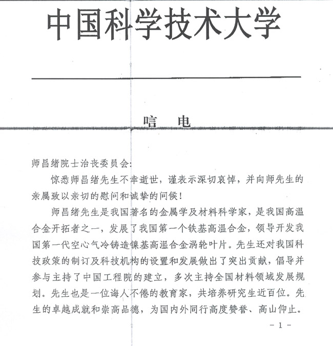 中国科学技术大学致唁电