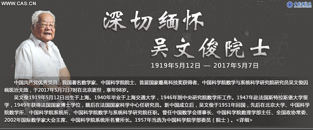 首届国家最高科技奖得主吴文俊院士逝世