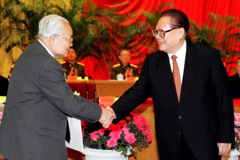 2001年,吴文俊获首届“国家最高科技奖”,江泽民颁奖