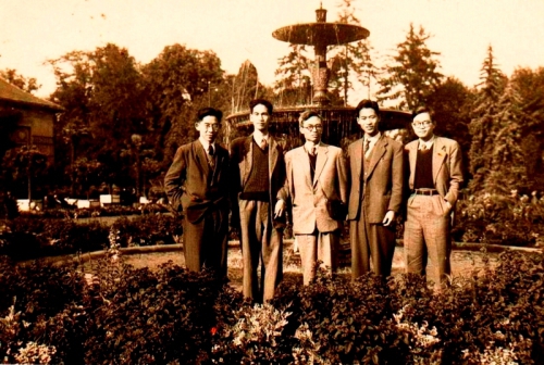 1948年,江泽涵访问法国斯特拉斯堡时与吴文俊等合影,左起:金星南、严志达、江泽涵、余家荣、吴文俊