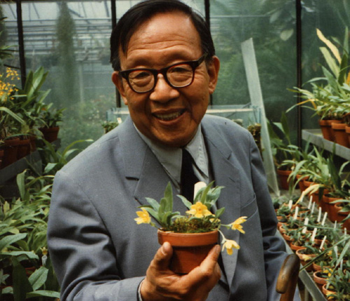 1984年,在昆明植物园兰花室鉴定兰花植物