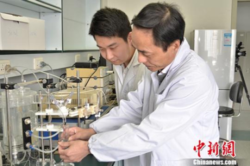 资料图:王逸平研究员(右一)在实验室。中科院上海药物所 供图
