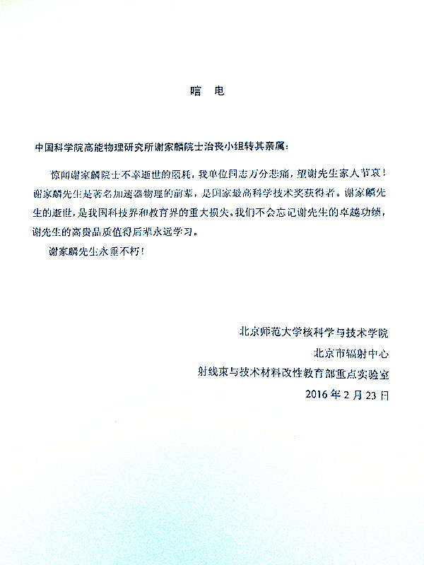 北京师范大学核科学与技术学院、北京市辐射中心、射线束与技术材料改性教育部重点实验室唁电