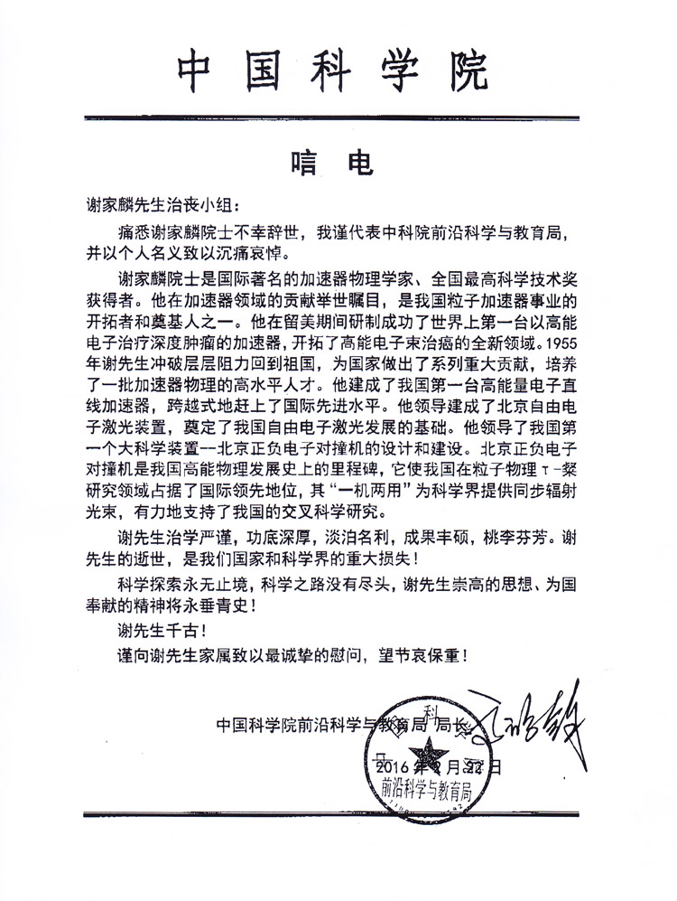 无码影片 前沿科学与教育局局长高鸿钧唁电